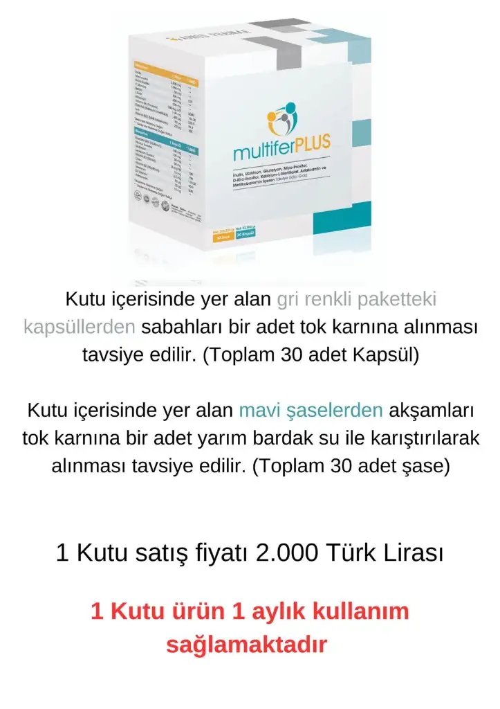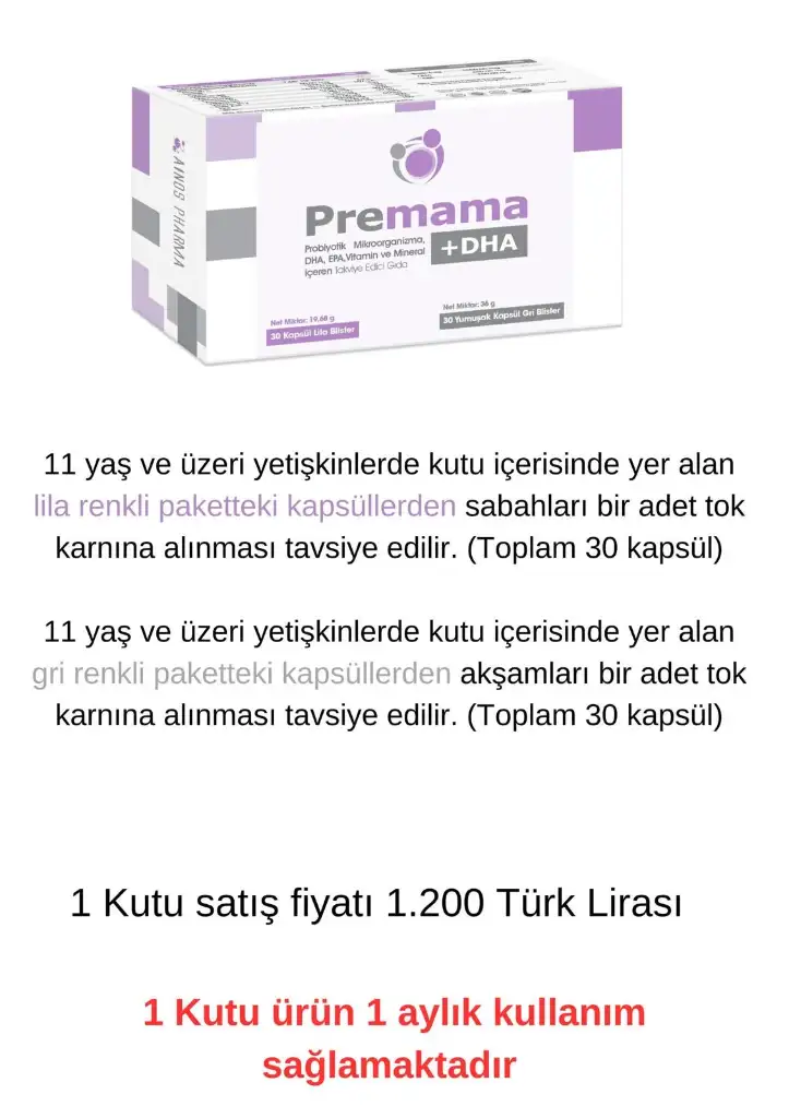 Eşim ve bana yazdı. Bana 1 tane premama +Dha ve Multifer plus. Eşime de ainus duo. Takviye edici gıda bunlar.