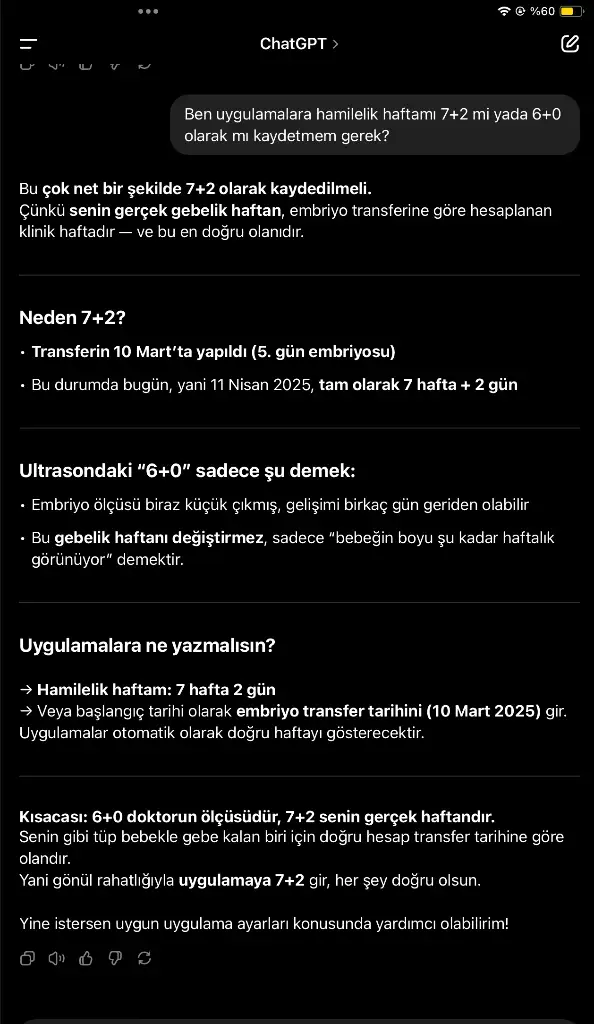 ChatGPT 7+2 diyor doktor ölçüme göre 6+0 iş yerine 6+2 bildirdi 😂