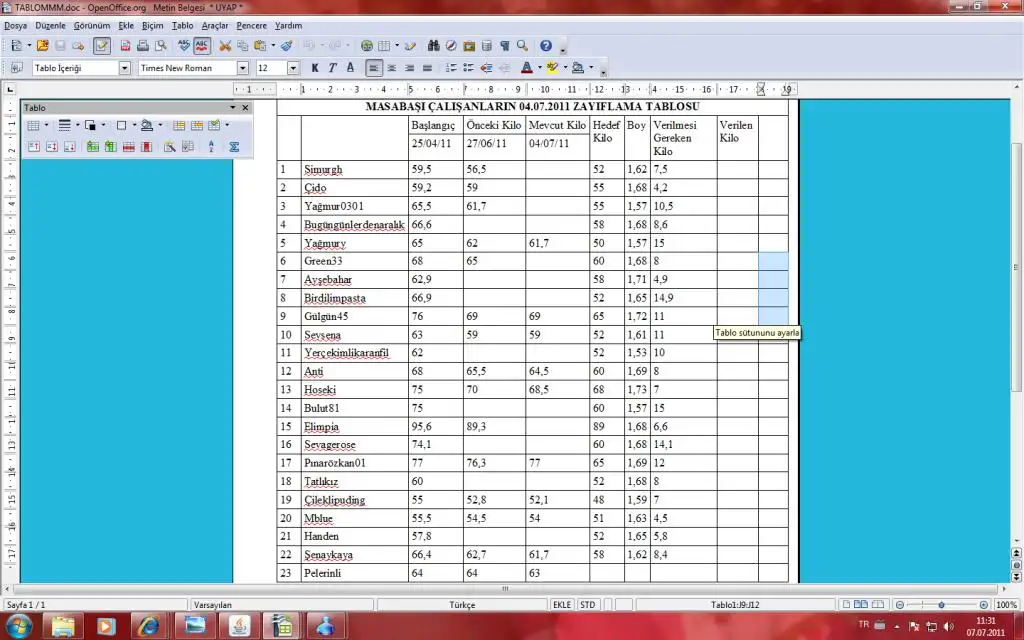 Sağ salim gelirsin inşallah canım, sen tartılamadım dediğinden kilo tablosuna yazamadım seni,