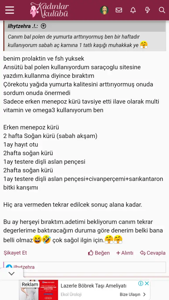 Tamam canim çok sağol, soğan kürü yapmıştım zaten. Bu ay düzenli kullanayim bendeCankm bem şimdilik böyle yapıyorum regl zamanı farklı bir şey var onu denicem amh yukseltip fsh düşüren çok olmuş hayıt ekstrası alcam hazır suyunu sabahları ac karna o akşam tok karna aslan pençesi icicem Y Yoncamirr birde youtubede dilek esen diye bayan var doktorlar tedavisiz zor demişama 2 ay bunları kullanıp dengeli beslenip ikizlere hamile kalmis ❤