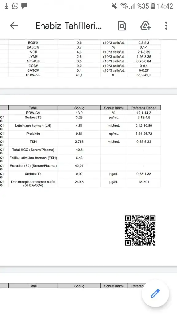 Serbest T3 çok çok azcık o kadarcık olur bence çok güzel değerlerin baktım hepsini o en altta DHEA SO4 büyük ihtimalle tüylenmem var demişsin ondan yapmışlar onun da normal gibi ama doktorlar onu daha iyi bilir hani şimdi bazı hormonlar yaş göz önüne alınır öyle normal değil bilinir ya.Tiroid dediginiz hangisi :/