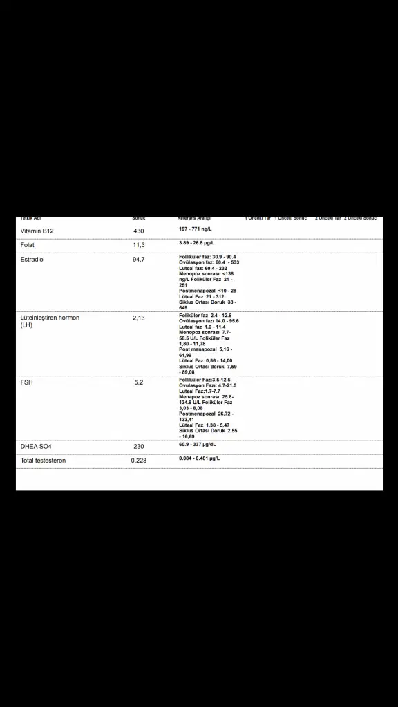 Değerlerin referans aralığında canım bi sorun görünmüyor ama amh da baktır mutlaka o çok önemliCanım bu hormon testi istanbulda mart ayında yaptırdım mayısta bayrama denk geldi yaptıramadım izmirde kendi doktorumda hormon yapak dedi ozaman amh değeri isticem burda yok dimi tshhariç diğer değerler nasil sence