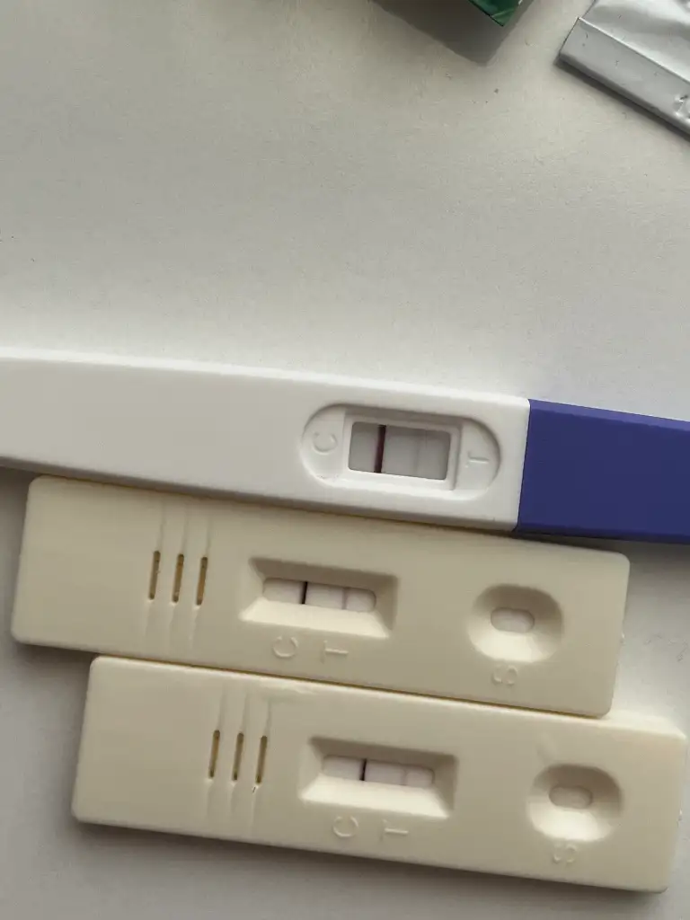 Sabah ilk idrarla yaptığım test ilk 4 dakika içinde böyle oldu . Persembe gunu kan testi vereceğim. Bakalım