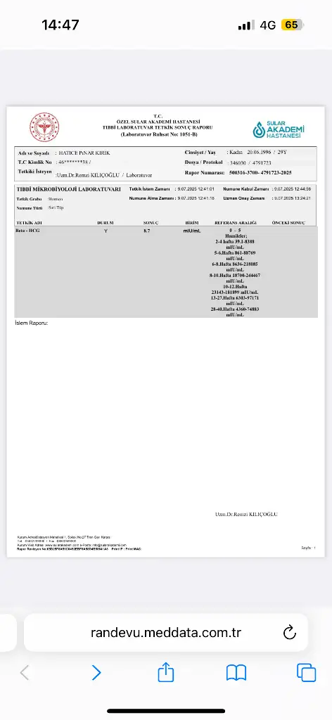 Değer çok düşük ve şu an kanamam var yine olmadıKısmet bu işler canım