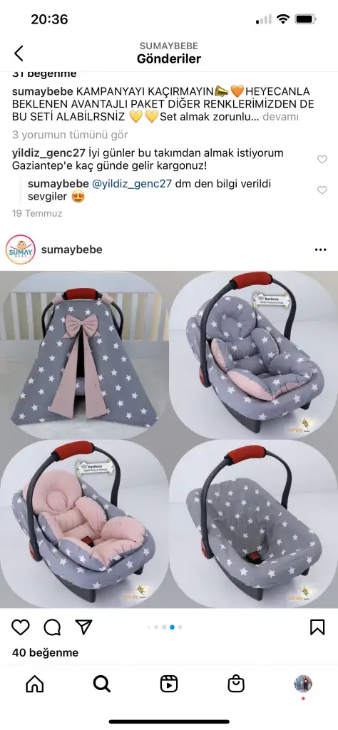 Nest ve puset seti olarak bunu aldım aynı desenin alt açma setini de aldım. Kıyafetleri de müsait bi zamanda atarım inş tulumlara başlamadım daha hastane çıkış takımı da almadım ama onlarada 1-2 aydan başlamak istiyorum. Mağazada gezip hoşuma giden şeyleri aldım sadeceAyy bazilarinin fotografini paylaşir misiniz? Bize de fikir ve heves olsun diye