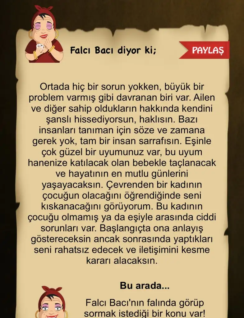 Sonra bi komşumuz bakmıştı falıma. Fincanın tam tabanında, göbeğinde cenin gibi bişi gösterdi. "Şu an hamile değilsin ama senin çocuk hazır, bekliyo sanki bi yerde" dedi şok olmuştum. Teyzenin yazık ne çocuk planımızdan ne de tüp bebek teknolojisinden haberi var yani o kadar uzak mevzuya. Annemle göz göze gelmiştik. Senin çocuk hazırda bekliyo nedir yaa? Nerden tutturdun bebemin o sırada donmuş halde beklediğini? :)) Evleneceğim tarihi de bilmişti o benim.