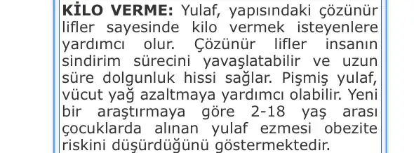 Burada yulafın karbonhidratı çokta önemli olmuyor çünki; yulafta diyette bize gerekli olan barsakları çalıştıran sinirleri yatıştıran birçok önemli mineral ve vitamin var.. Diyeti hem kolaylaştırıyor hemde sağlıklı hale getiriyor .. Bak birkaç yazı gönderiyorum herkes okusun,yardımcı olur belki 😉