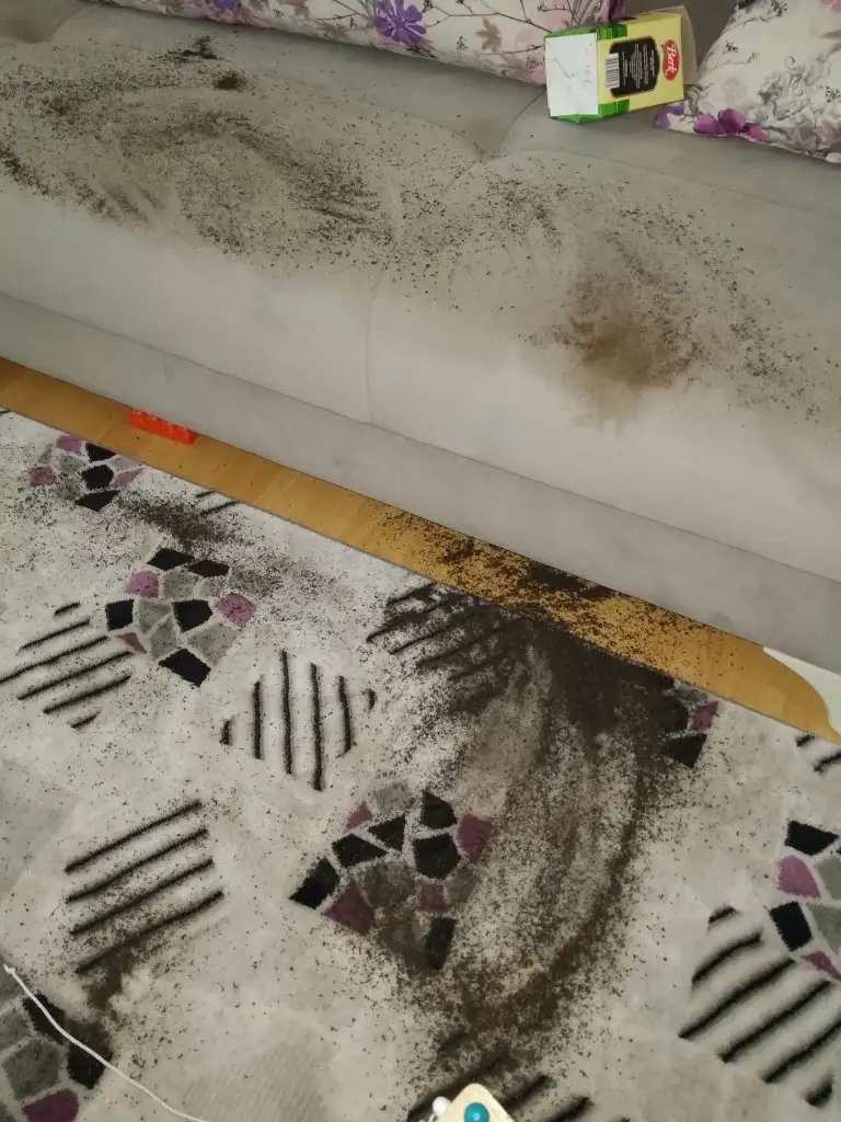 Bugünde oturma odasında koltuğa yerlere çay dökmüş heryer çay içinde o kadar süpürdüm ama siyah siyah minik minik hala yerlerde görüyorum geçen günde koltuğa ve yerlere cifi dökmüştü battı heryer o kadar önlem alıyorum ama napıp edip yine ulaşıyo