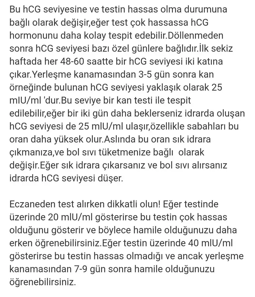 Amin canım inşallah öyledir benim ilk kızımda kanda 4 haftalıkken bile idrar testim koyu değildi soluktu ikinci kızımda zaten benden başka kimse görememişti çizgiyi yok gibiydi aynı oda kanda 34.5di işte burda daha önce kanında 25 30 olupta idraf testinde baya belirgin olan kişiler görmüştüm bünye meselesi dediğin gibi iki cocuğum var ikisindede hiç koyu koyu çizgi göremedim şansımaBenim yerleşme kanamamdan 4 gün sonra idrarda kopkoyu çift çizgi çıkmıştı canım