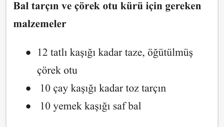 Canım 1 çay kaşığına 1 yemek kaşığı falan değil günlük yapmıyorsun ki onu bi kapta hazırlıyorsun 10 gün yiyorsun. Adetin 2. Günü başlayıp 12. Günde bitiriyorsunKızlar bal - çörek otunu nasıl kullanıyorsunuz 1 yemek kaşıgı bala 1 çay kaşıgı çörek otu diyor ama hergün mü kullanıcam? regl dönemi dahil mi?