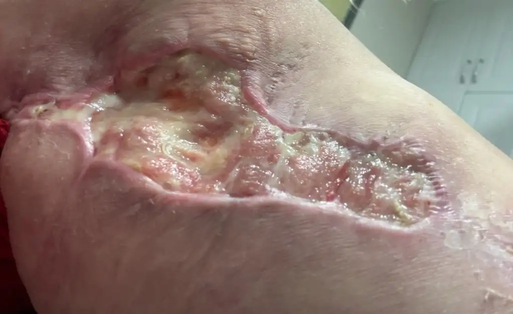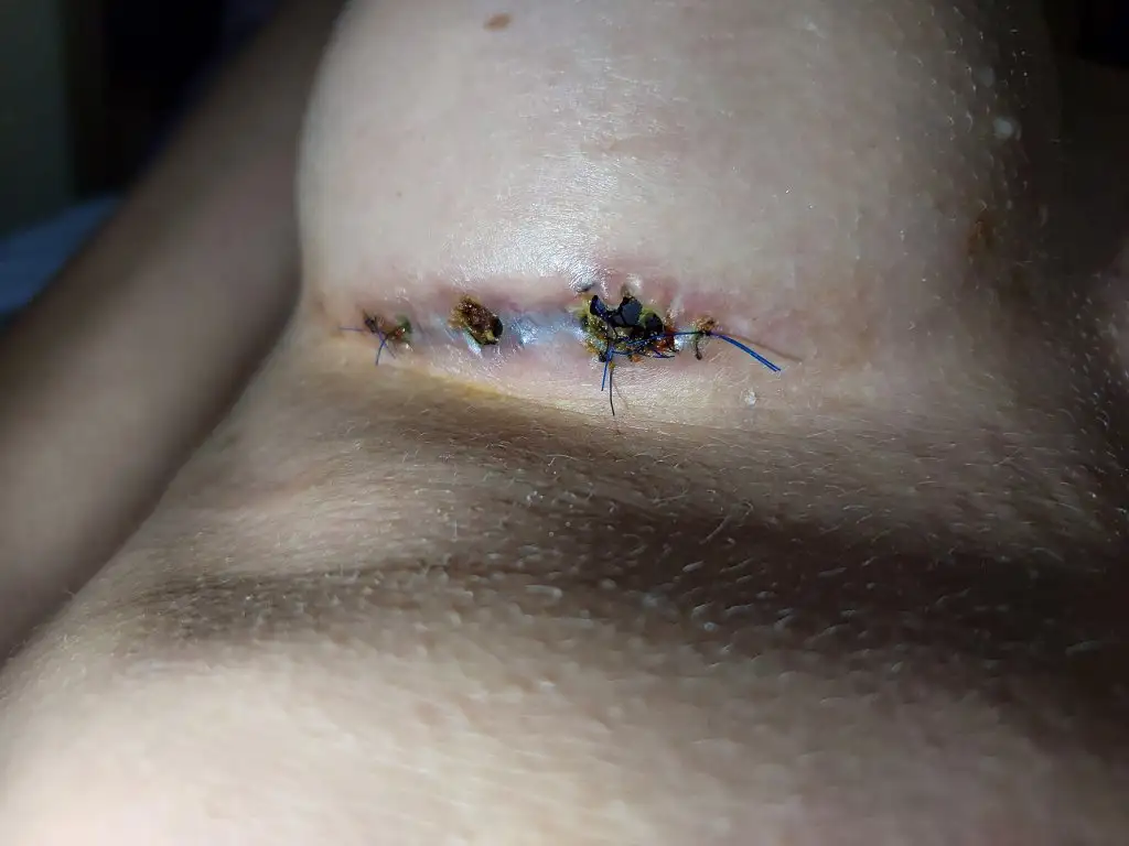 Benim de açılmıştı ama dikişlik değildi. Bana rif ampül verdi doktorum. Kullandıkça kabuk bağladı sargı bezini her çektiğimde ise kanadı. Doktor bırakma kurumaz dedi ama ben bıraktım kurudu size tavsiyem dikiş attırmayın. Aynı olay arkadaşımın başına geldi kaz kez dikiş attırdı dikiş atınca doku ölüyormuş. Silikonu gözüküyordu en son Allah sizi kahretsin dedi elini ayağını çekti o kocaman delik bir kaç ay sonra kendi kendine kapandı. İşlem yaptırmayın doktorlara tavsiyem