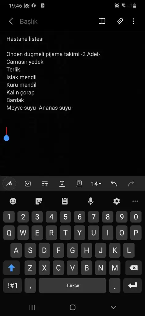 Simdiden gecmis olsun benim okudugum kadariyla terlik, islak mendil, onden dugmeli pijama takimi hastanede lazim oluyormus 🙃