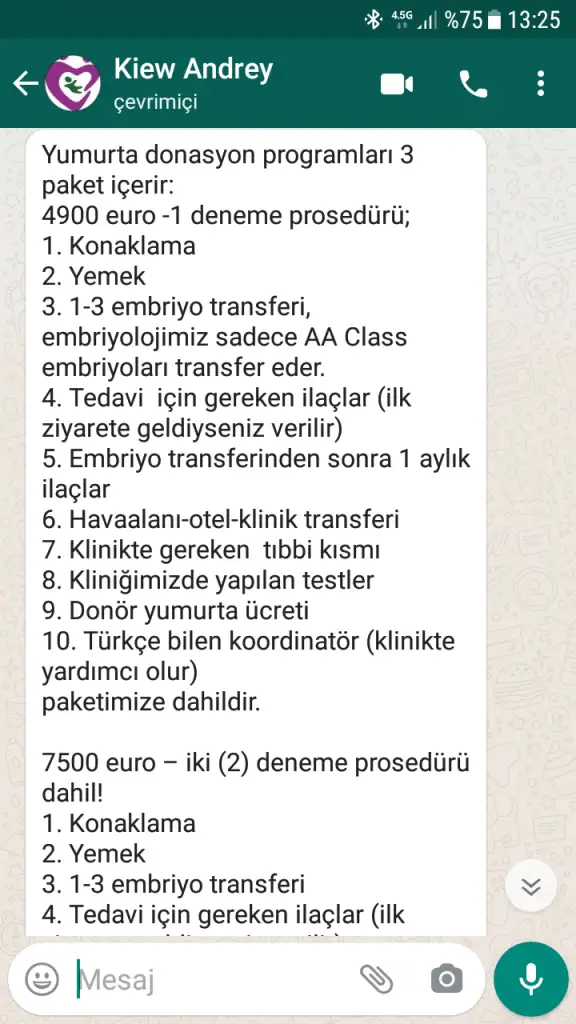 Kıbrısı da duydum ama orda deneyen arkadaşların deneyimleri orayı pek tavsiye etmeyisleri.cok para ve ne otel ne konaklama ne yeme ne içme hicbir şeye karışmıyorlarmış ve araştırma ıyi değilmiş. Kiew de 3paket sistemi var ve paket içinde konaklama yeme ilaç tahlil herseyiniz dahil e 4900 euro dan başlıyo paketleri. Sizi orda türkçesi ıyi olan sorumlular katılıyormuş donerini kendin seçiyormuşsun hatta dur bak ben sana yaziyo atayım