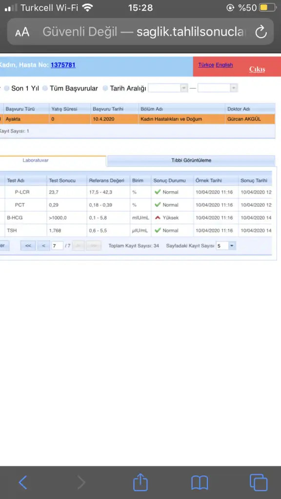 Bugun hamilelik için sonuclarım cıktı ama doktor olmadığı için alamadım elimde sadece bu sonuclar var sizce gercekten hamilemiyim evde yaptığım test 3 de pozitif ama cuma gunu doktor ulturasonda baktı kese yok dedı merakdan ölcem