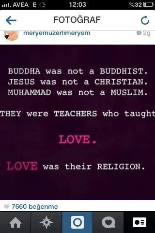 Eki Görüntüle 1051961 Buyrun capsi paylasildimi bilmiyorum ama Az bucuk ingilizceye hakim olan muhammed was not a muslim'in Muhammed sadece bir peygamber degil ogretendir de yazdigini anlar.Bahsettigi love in Allah aski oldugunu da tabi anlar.Ama masallah oyle din alimleri var feyva vermis resmen kadinin sayfasinin altinda.