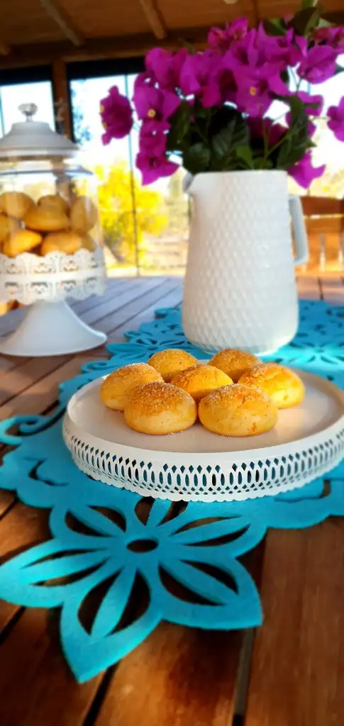 Üstlerine yumurta sarısı sürüp ve toz şeker serpiştiriyoruz.