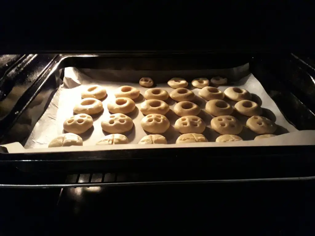 Bıçakla, karmakla ve kalemin arkasıyla kurabiyelerin üzerine yuva açıyoruz.