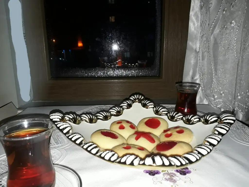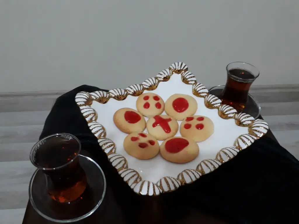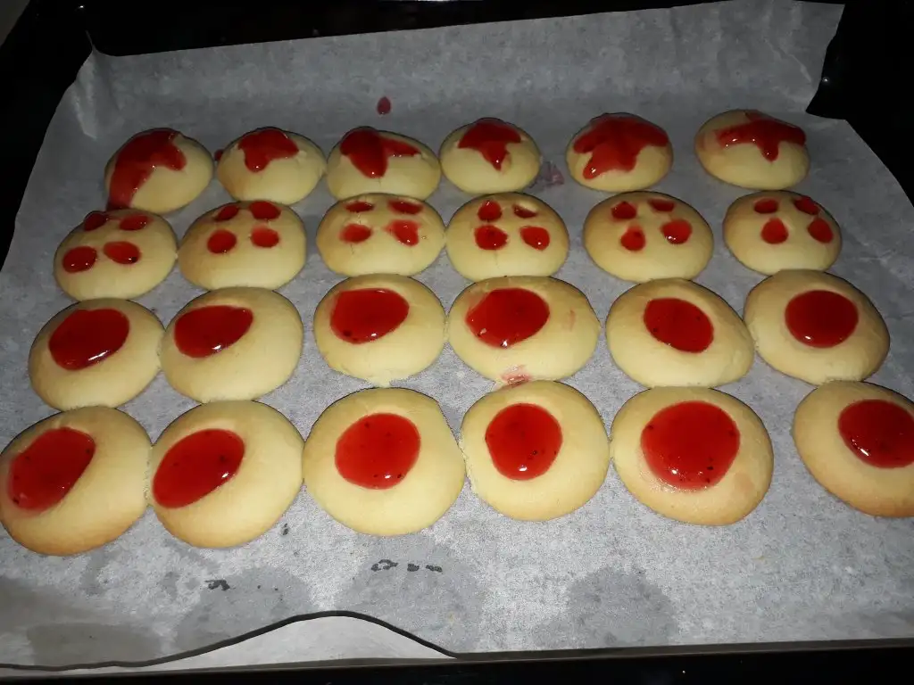 İkisi de sıcakken meyve sosunu kurabiyelerin üzerine döküyoruz.