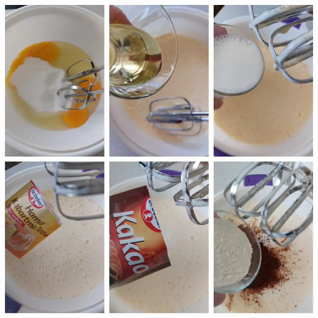 🍒 şeker ve yumurta önce çırpılır. Sonra tüm kek malzemeleri eklenip iyice homojen olarak karıştırılır.