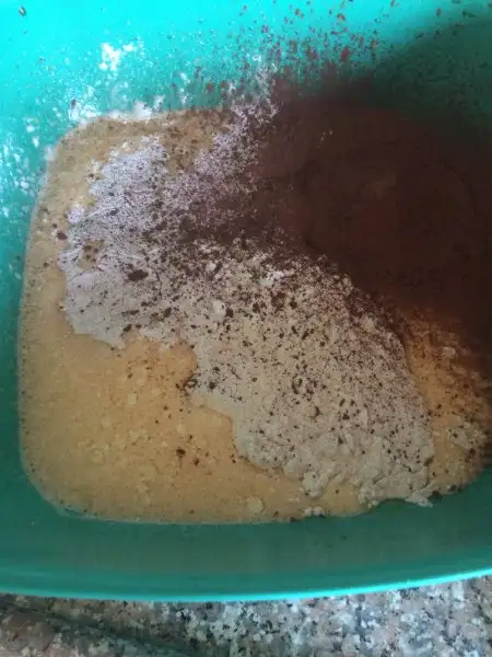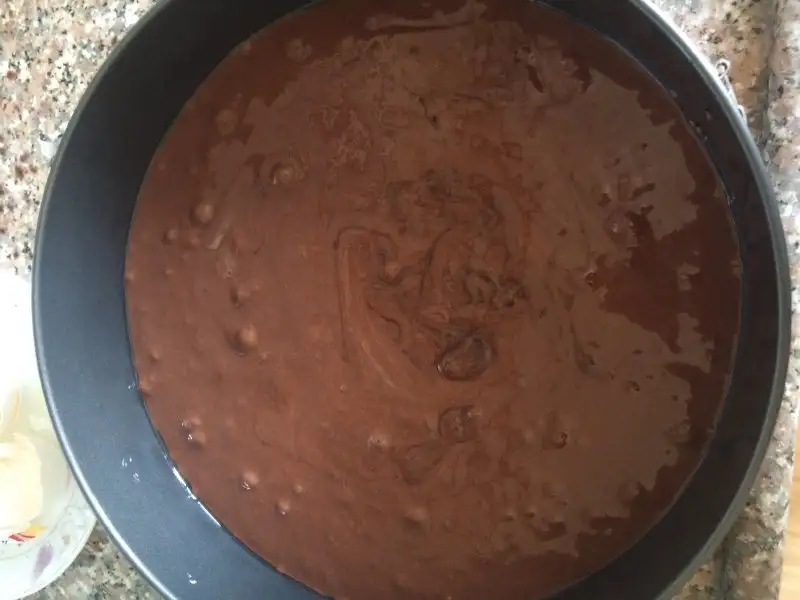 yumurtayı ve şekeri mikser yardımıyla 5 dakika çırpıyoruz ardından unu kabartma tozunu vanilini kakaoyuda ilave edip tekrar mikserle iki dakika çırpıyoruz yağlanmış kelepçeli kalıba kekimiz döküyoruz