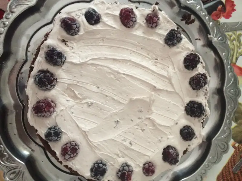 180 derecede ısıtılmış fırına kekimizi pişiriyoruz kekimiz pişince ortadan ikiye kesip soğumaya bırakıyoruz bir su bardağı soğuk süte 3 yemek kaşığı şeker atıp karıştırdıktan sonra kestiğimiz ve soğuyan kekimize sütü döküyoruz iki kekimize de sonrasında bir çay bardağı sütle bir paket krem şantiyi çırpıp kekimizin ortasına sürelim böğürtlenlerimizi uç kısımlara dizdikten sonra diğer kekimizi üzerine koyalım iki çay bardağı sütle iki paket krem şantiyi tekrar çırpıp pastamızın önce kenarlarına sürelim ardından bonibonlarımızı teker teker aralıklı dizelim sonra üzerine sürelim krema pompamıza krem şantiden koyup kenarlarına süslememizi yapalım