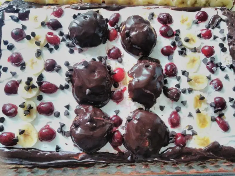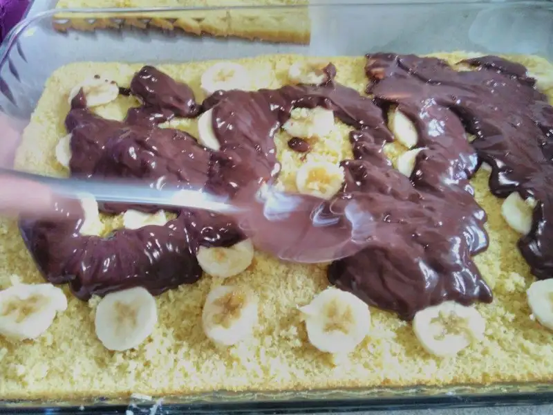pasta kekini ikiye ayırıp içine muz dizdim ve çikolatalı puding yapıp döktüm . sonra en üst tabakayada krem şanti sürdüm ve süsledim .