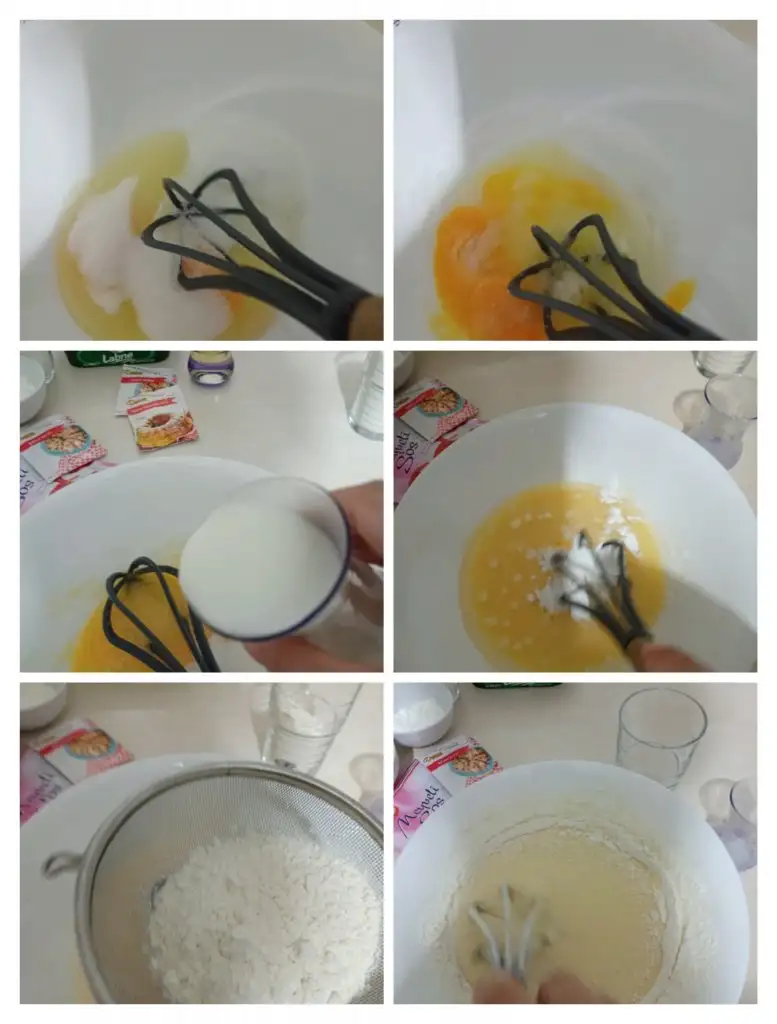 Diğer yandan muhallebi yapımına geçiyoruz. Süt, Un,nişasta ve şekeri sırası ile karıştırıyoruz ve ocağa koyuyoruz.