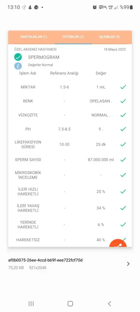 Selinaysun Selinaysun ileri hızlı ve morfoloji de sorun var diye kim dedi. Bu değerlerle normal yolla çocuk sahibi olan milyonlarca kişi var. Sadece morfoloji 4 olması beklenir o da 2 çıkmış. Keçiboynuzu kaynatın sabah akşam içsin. Taze kaynatın.