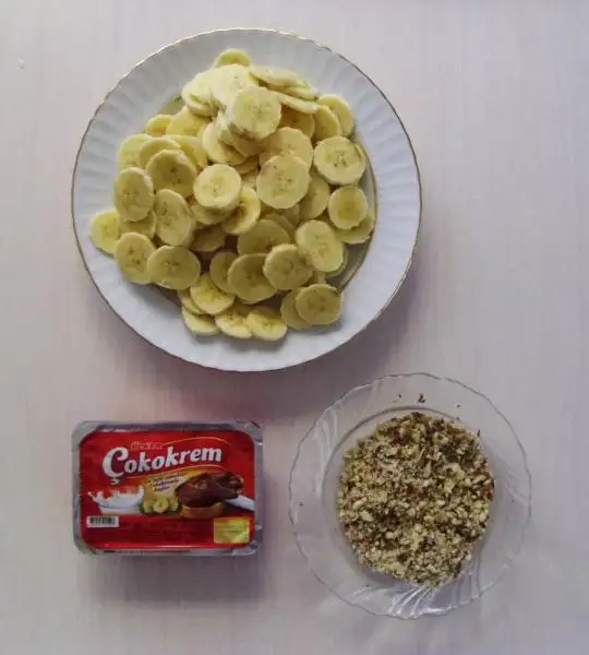 Dilimlenmiş Muz, Çokokrem, Dövülmüş Ceviz (fındık, fıstıkta olur)