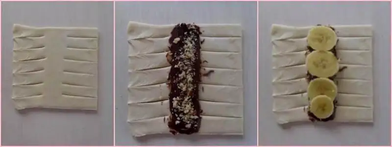 Malzemelerimizi önce çokokrem, daha sonra ceviz ve en son da muz olarak yerleştiriyoruz.