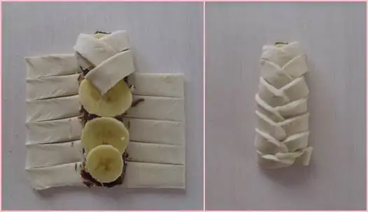 Daha sonra saç örgüsü şeklinde kesmiş olduğumuz şeritleri üzerine birleştiriyoruz.