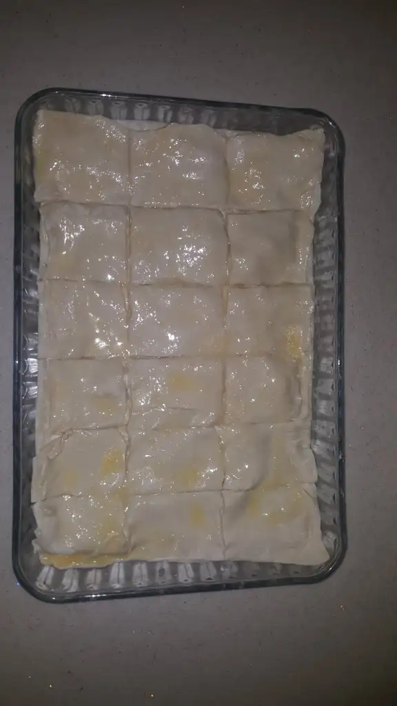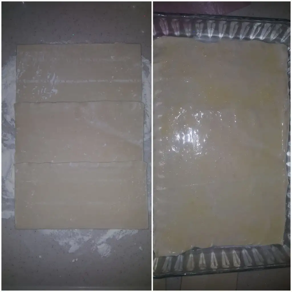 ardindan 3 tane ciftli milfoyu alt alta dizip biraz unlayip merdaneyla tepsi veya borcam boyu kdr aciyoruz..ustune sosumuzdan dokup bir tane yufkayi yayiyoruz onunda ustune sos dokup diger yufkalaro parcalayip ustune koyuyoruz tekrar sos islemine devam ediyoruz