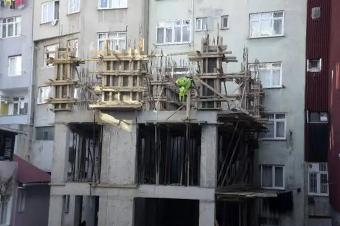 burada sarı bina, inşaat olan binanın arsasına girmiş ve öyle yapmış binayı. sarı binanın yıkım kararı vardı. içindekiler yıktırmayınca da inşaat halindeki binanın müteahhiti böyle yapmıtı yıksınlar diye. burada ekstrem bir durum var yani.buyrun