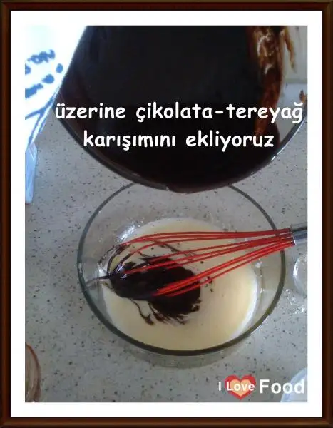 Köpüren karışıma eriyen çikolata ve tereyağı ilave ediyoruz