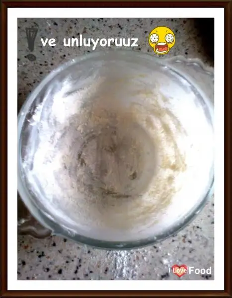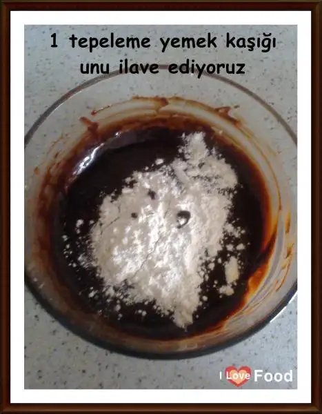 Üzerine 1 tepeleme yemek kaşığı un ekleyip kek kıvamına getiriyoruz.