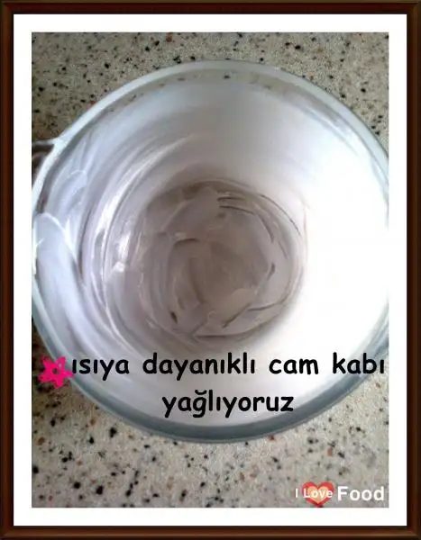 Yağlayıp unladığımız kabımıza karışımı döküyoruz.
