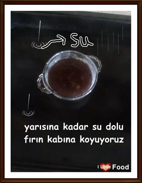 Kek kabını da yarısına kadar su dolu fırın tepsisine koyup 175 derecede 10-15 dakika pişiriyoruz.