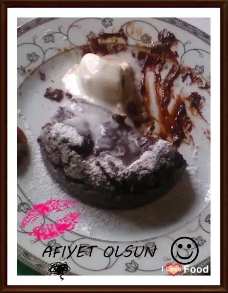 Keki kalıptan çıkarıp pudra şekeri ve dondurma ile servis yapıyoruz