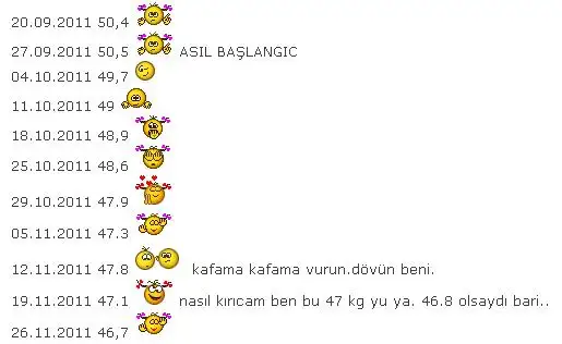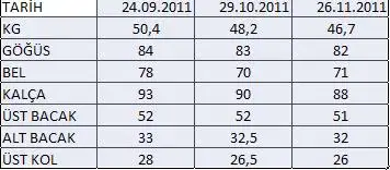 19.11.2011 47.1 :111: nasıl kırıcam ben bu 47 kg yu ya. 46.8 olsaydı bari..
