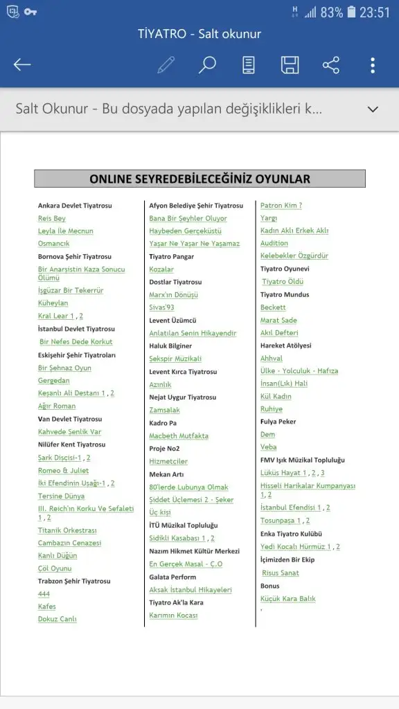 Link ekleyemedim ama güncel devlet tiyatrosu ve özel oyunların linkleri var onları izleyebilirsin