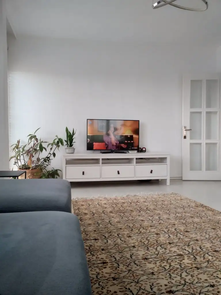 Balkona perde taktık. Kilimini serdik dün. Keyifli olur oturması.