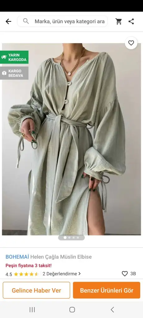 Benimde çok güzel elbisemHayırlı olsun ben de bir elbiseye yükseldim ama alır mıyım bilmiyorum kendimle savaşıyorum şu an. İhtiyacım yok ama asla eskimeyecek ve altına giydiğin ayakkabıya göre her ortama giyilecek bir elbise..hımmmböyle deyince bak kesin almalıyım gibi geldi ben ikna oldum