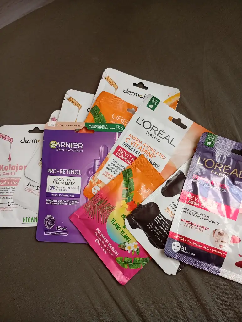 Lorealin c vitamini aldım bi kaç tane de retinol olanını aldım. Saç maskesi de tek kullanımlık maskeler oluyo ya onlardan aldımMaske ne aldın
