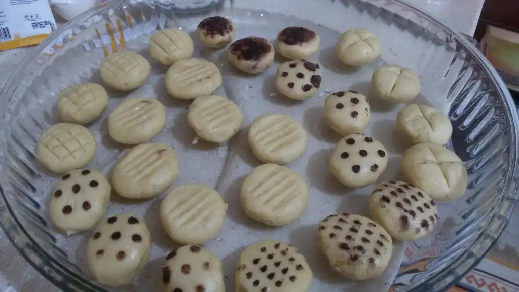Hamurdan küçük küçük parçalar alıp elimizde yuvarlayıp hafif üstüne bastırıp çatal veya bıçak yardımıyla şekil veriyoruz ben azıcık kakao kullandım renklensin biraz diye de.