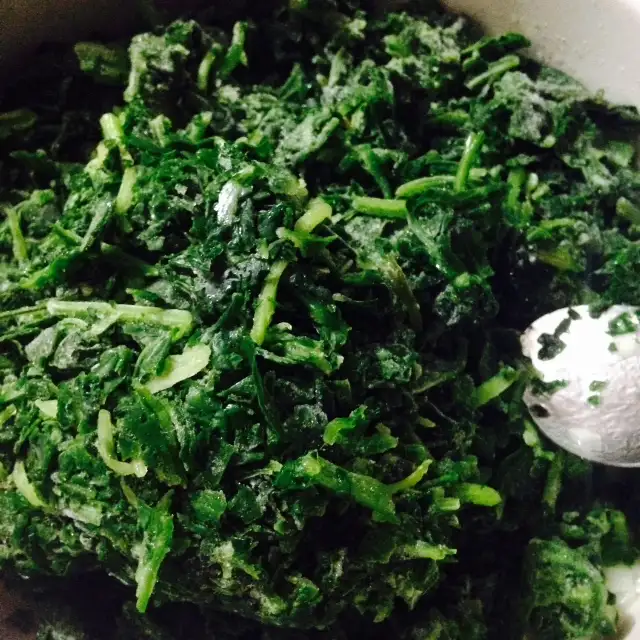 dondurulmuş ıspanağı kavrulan soğanların üzerine ekledim..