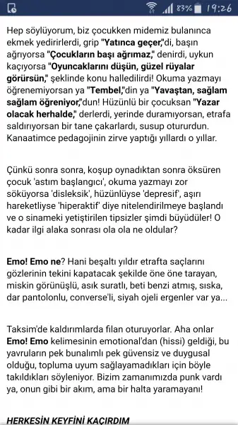 Istediginiz kadar inkar edin, pedagoji denilen birsey var. Ergenler kendini mutsuz his edebilir. Bunun adi hormon ve ergenliktir. Disleksi ve hiperaktif olayi gercektir. Bunu inkar etmek sadece cocuklari sonra sokmaktan baska birsey degil.