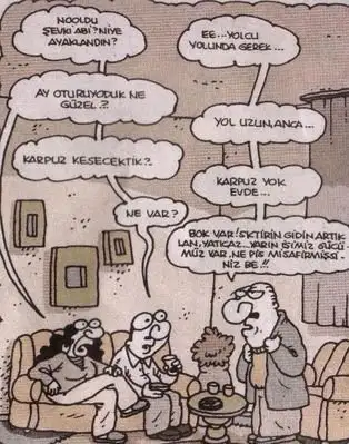 Bi yerde bi karikatur gormustum, misafirler gitse de rahat rahat osursak diyodu adam icinden