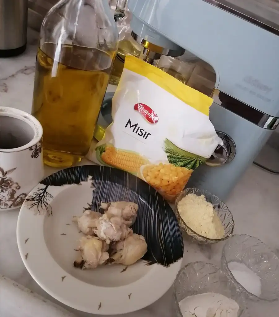 Yapılışı ; Un ve mısır ununu kokusu çıkana kadar kavuruyoruz haşladığımız tavuğun suyunj ve sıcak suyu ekliyoruz kaynayana kadar karıştırıyoruz tavuğumuzu ekleyip blendırdan geçiyoruz mısırımızı ekleyip 5 dk kaynatıyoruz