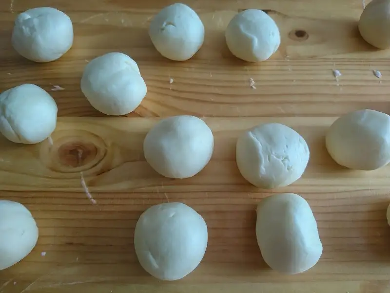 - Diğer yarısını da minik eşit parçalara ayırıp yuvarlıyoruz.(İstediğiniz şekilde yapabilirsiniz. Ben bu şekli verdim isterseniz hepsini yuvarlak yapabilirsiniz..)