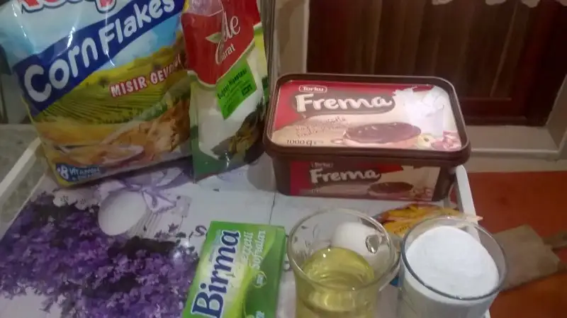 Mısır gevreği elimizle biraz ufalanir.